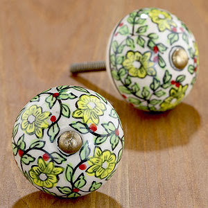 I've spoted these door knobs at World Market. We're thinking of painting our cabinet(s) white in the bathroom. Currently they're just wood looking. And I was thinking of adding these cute knobs...what do you think? (there's a little mint green on the knob, hard to see in the above photo). Or do you like these better?